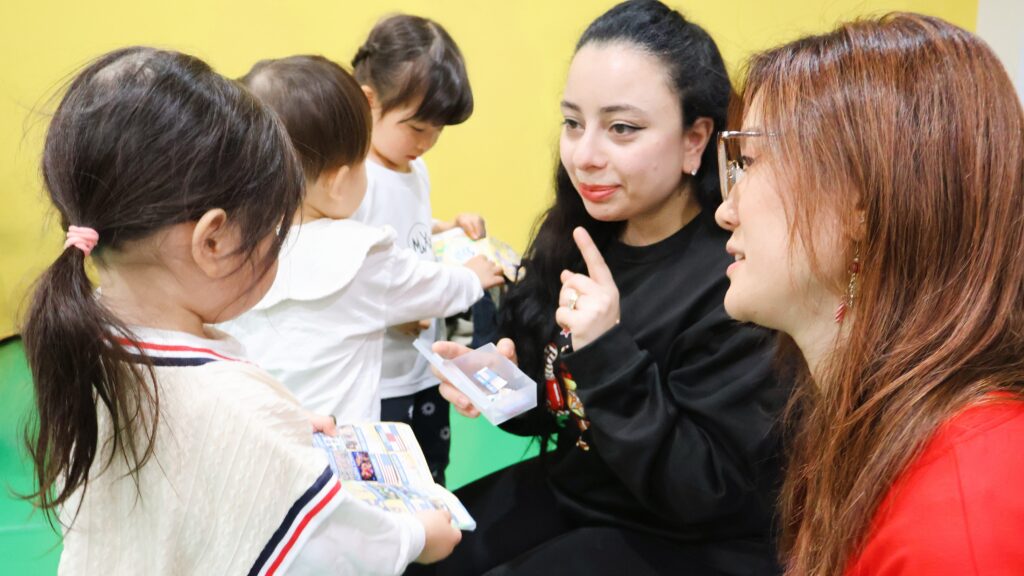 遊びややりとりの中で、英語を聞いて、反応し、声に出す経験を重ねながら、ことばへの理解と表現力を育てていきます。